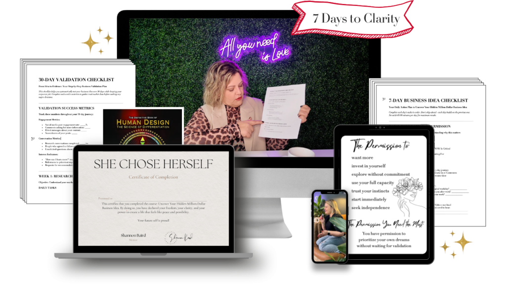Uncover Your Hidden Million-Dollar Business Idea in 7 Days gives you a simple, step-by-step system to cut through the overwhelm, silence imposter syndrome, and uncover the one business idea that feels aligned, exciting, and profitable.